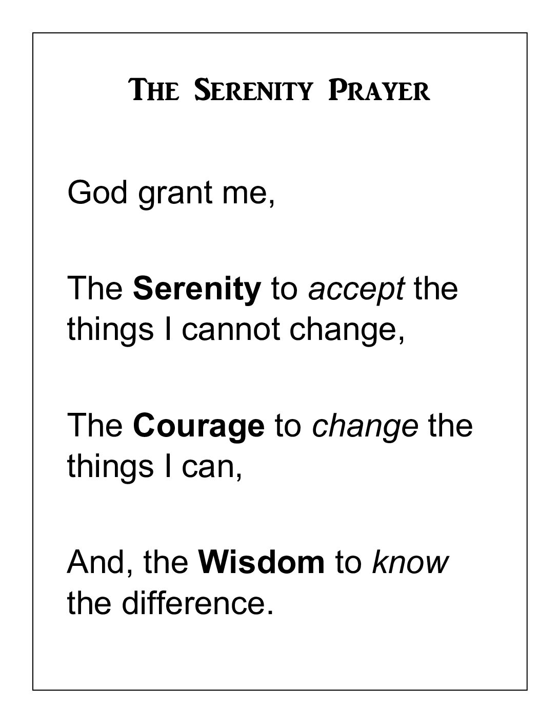 Back when I spent a lot of in local church-based twelve step programs, I became acquainted with this prayer known as the “Serenity Prayer.”